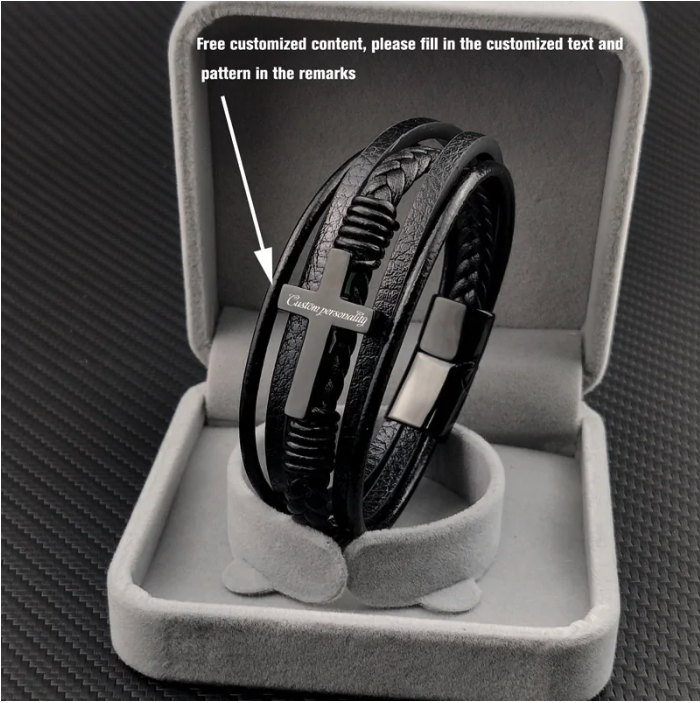 Unleash your innate charm and redefine style with the Stainless Steel and Leather Cross Bracelet. It's more than a piece of jewelry; it's an extension of your persona, a testament to your flair. Elevate your style today – order yours and become the epitome of modern masculinity!