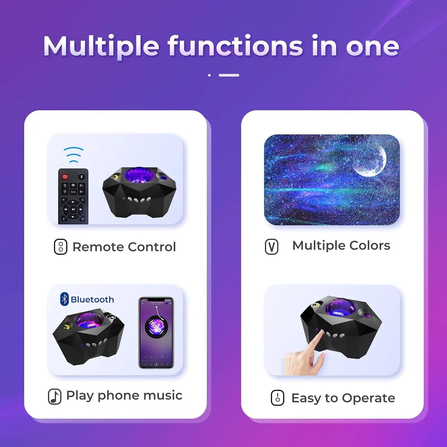 Elevate your surroundings with the mesmerizing Northern Lights Projector, a symphony of celestial magic that paints your world with abundant projection effects. Immerse yourself in the wonder of the night sky and revel in relaxation, all from the comfort of your space.